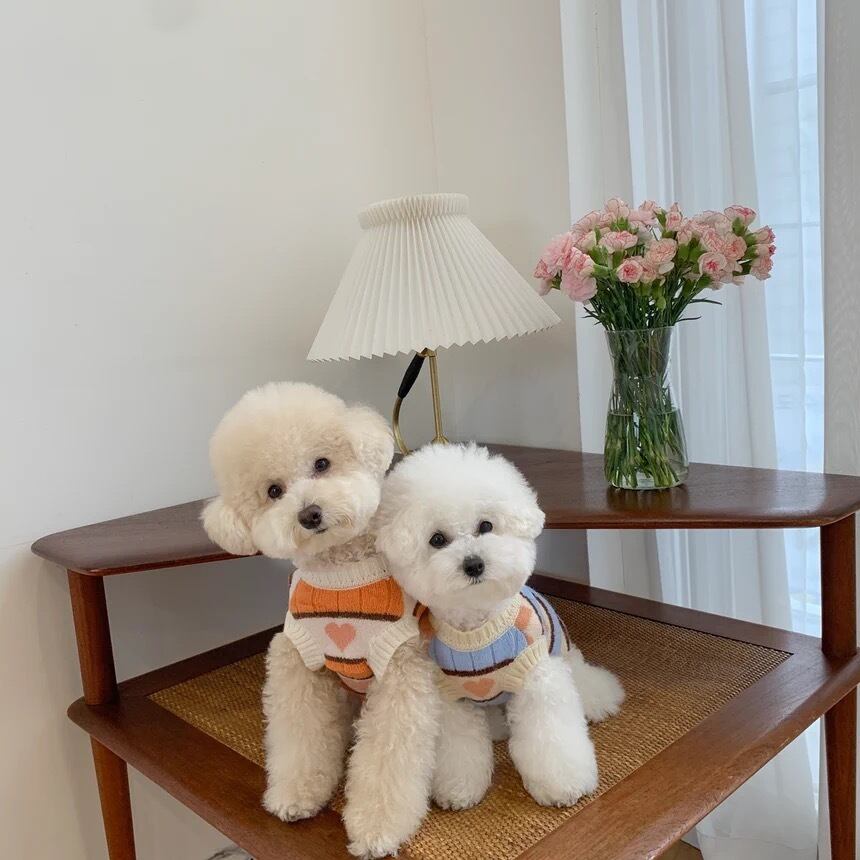 リブニットにハート柄の