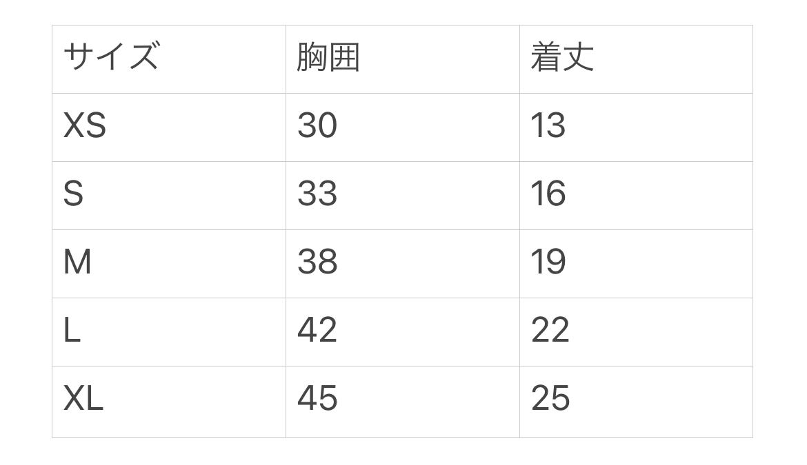 ※サイズ表はお洋服によって違います。