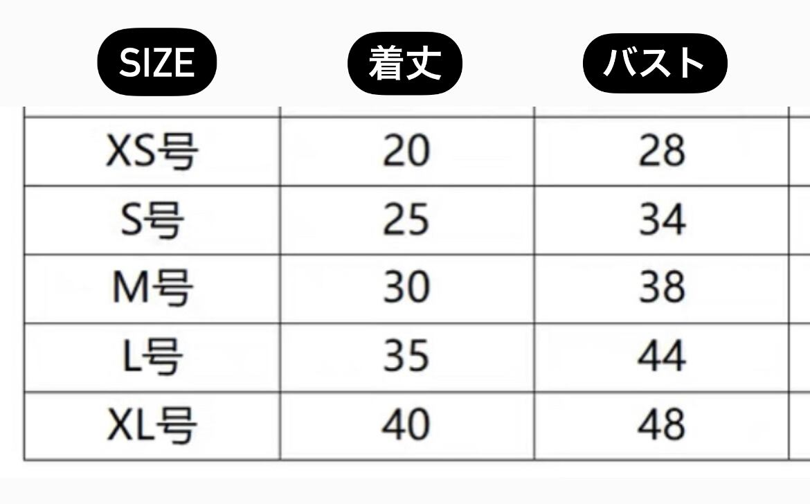 ※サイズ表はお洋服によって違います。